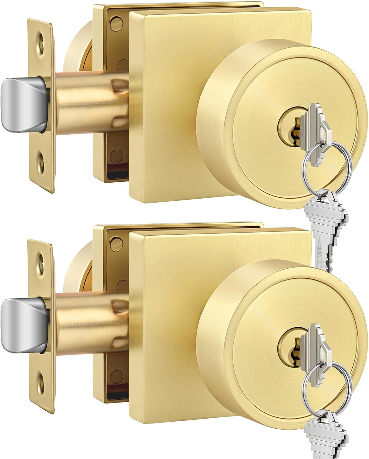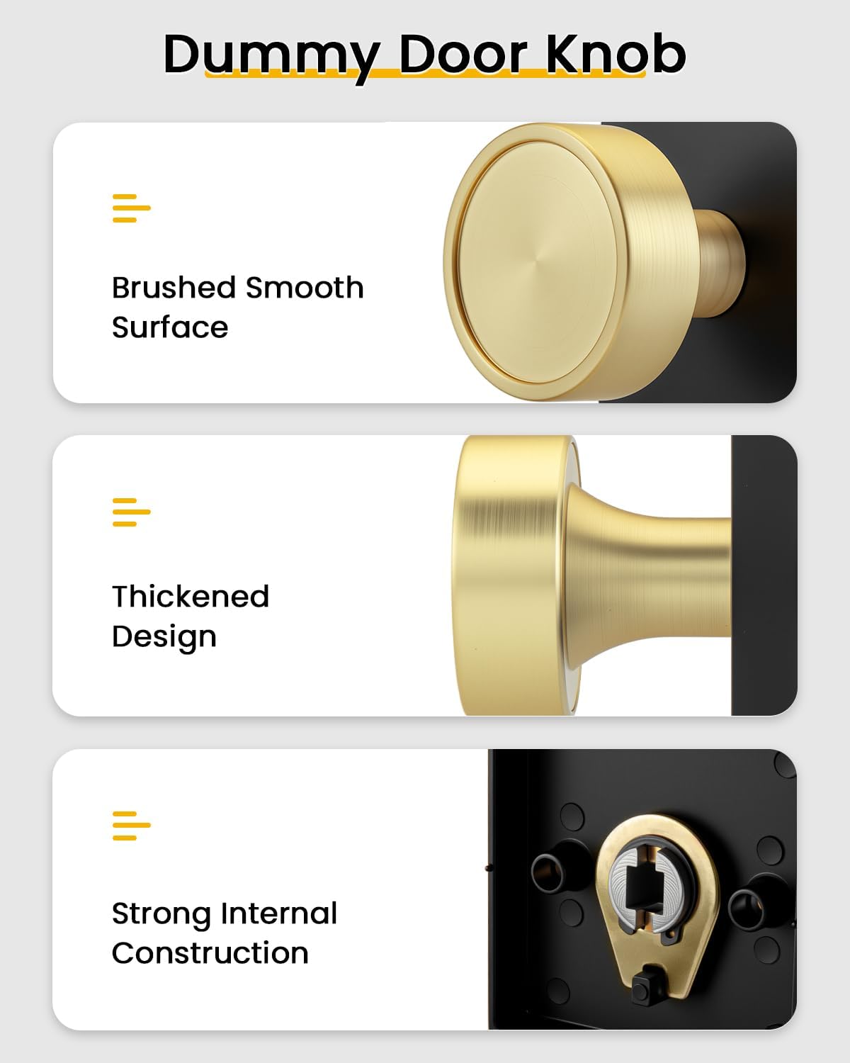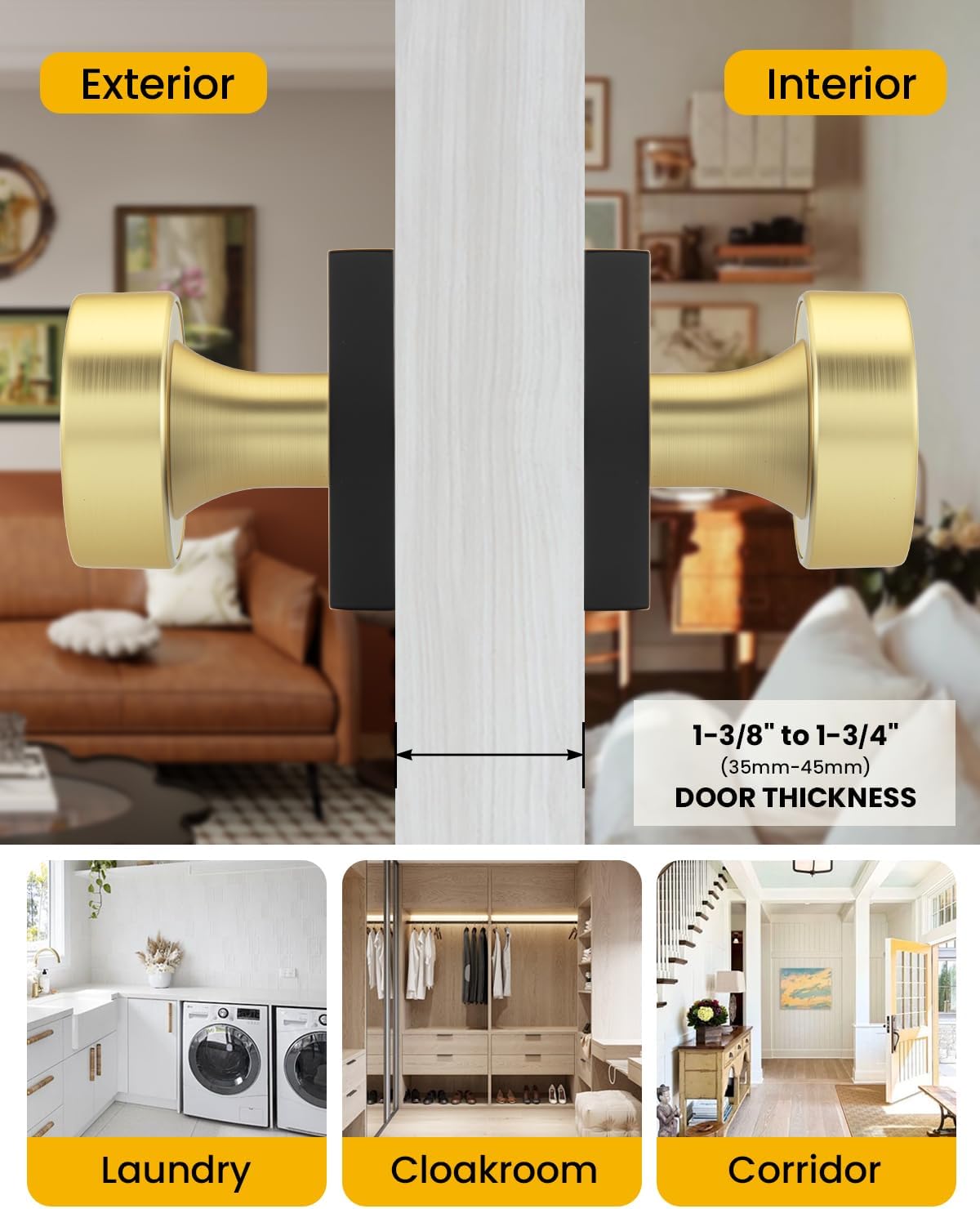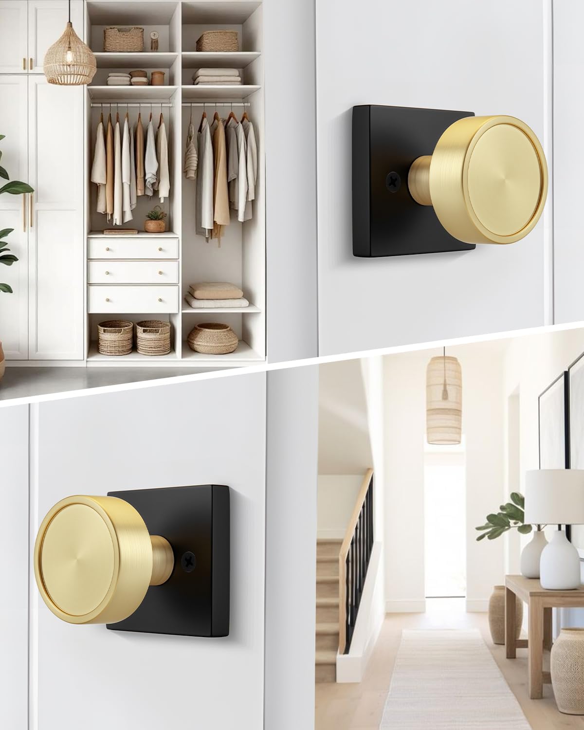goldenwarm Dummy Door Knobs Black and Gold, Non-Turning Single Side Pull Door Knob, Heavy Duty Door Knobs for Closet Pantry(Square, Zinc Alloy, 4 Single Door Knob)