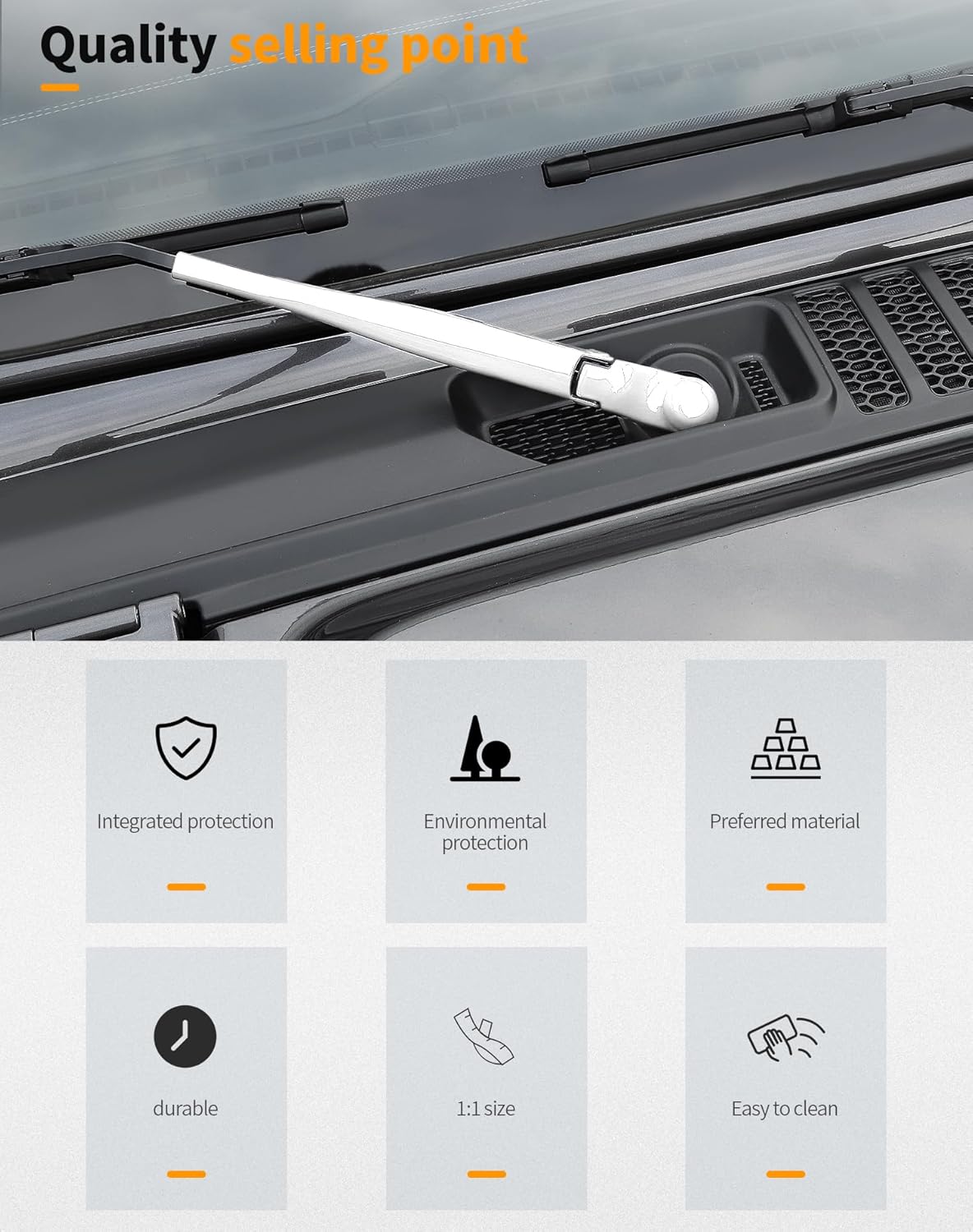 Fitment: For 2018 2019 2020 2021 2022 2023 2024 2025 Jeep Wrangler JL JLU & Gladiator JT Features: High quality material: Made of High quality ABS material, lightweight and durable, not easy to crack or break. Luxurious appearance: Brings a comfortable feel and luxurious appearance, provides a high class and fashion decor style for your car. Direct replacement: Simple installation with a direct replacement. No modification needed / No drilling or cutting required. Perfect match: Direct Fit, Comes with pre-applied Double-sided Tape. It can cover existing scratches and prevent your car from scratch and abrasion. Specifications: Material: High-quality ABS Plastic Condition: 100% Brand New Size: As The Picture Is Shown Installation Method: Use water or detergent to clean the panel, and make sure no dust. then wipe off water and wait for dry. Peel the protective film off at its back and stick on their position. Press down a few minutes to remove bubbles for better adhesive. After finished the installation, don’t contact with water within 20 hours. If the tape in mounting surface is weak in cold weather, please use the heat gun to make the glue warm before installed