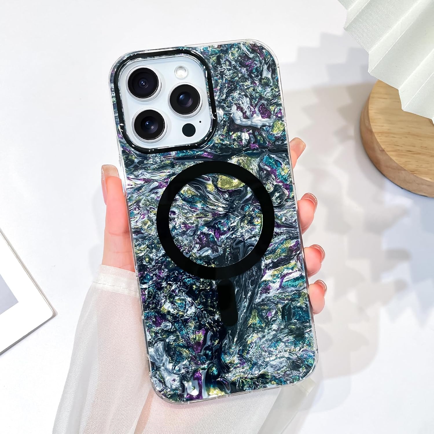 | Compatible Phone Models | iPhone 15 Pro Max, iPhone 15 Pro Max Case Compatible with Magsafe, iPhone 15 Pro Max Laser Iridescent Case |