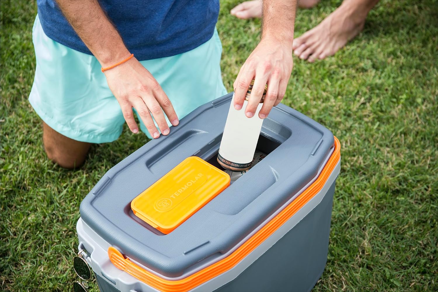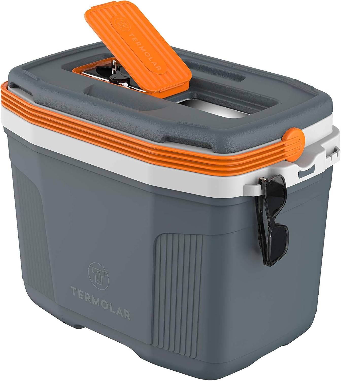 Features Brand Thermolar Style SUV32 Description SUV Cooler The SUV 32L Thermal Box is safe, useful, and versatile. With innovative design, it has quick access by exclusive slide opening with case to store your belongings, features distinctive thermal conservation through the Air Flow System, which allows air circulation through the base, thus bringing better performance in thermal conservation. Its handle is strengthened and sturdier providing security for individual transport, and increased ergonomics through angles at the corners, for double carrying. The lid contains top and bottom grips that allow for one-hand opening and is reversible, with times on the back. On the base, they have grips that make it easy to remove the liquid, or ice. Another difference is in the small side straps, which allow you to secure bags or elastic strings. A product with Thermolar quality and guarantee. Features: Plastic outer material; Expanded polystyrene (EPS) heat insulation; Sliding opening; Quick Access; Up to 12h Thermal Food Conservation and 24h for Liquids with Ice Use 20% Content: Pack of 01 SUV Cooler Box. Approximate Measurements: Height: 39 cm; Width: 32 cm; Length: 52cm; Capacity: 32 Liters. Pictures for illustration only, other items are not included with the product. Color may vary based on your monitor settings.